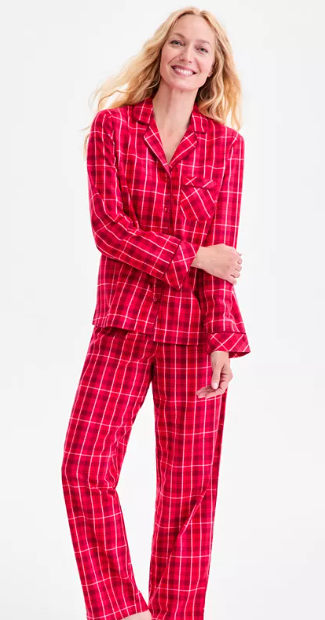 Conjunto de pijama de franela de algodón de 2 piezas para mujer